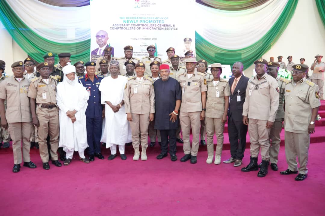 The Comptroller General of Nigeria Immigration Service, KN Nandap, has on Friday decorated 15 Assistant Comptrollers General (ACGs) and 95 Comptrollers of Immigration Service (CIS), at the Service Headquarters.
