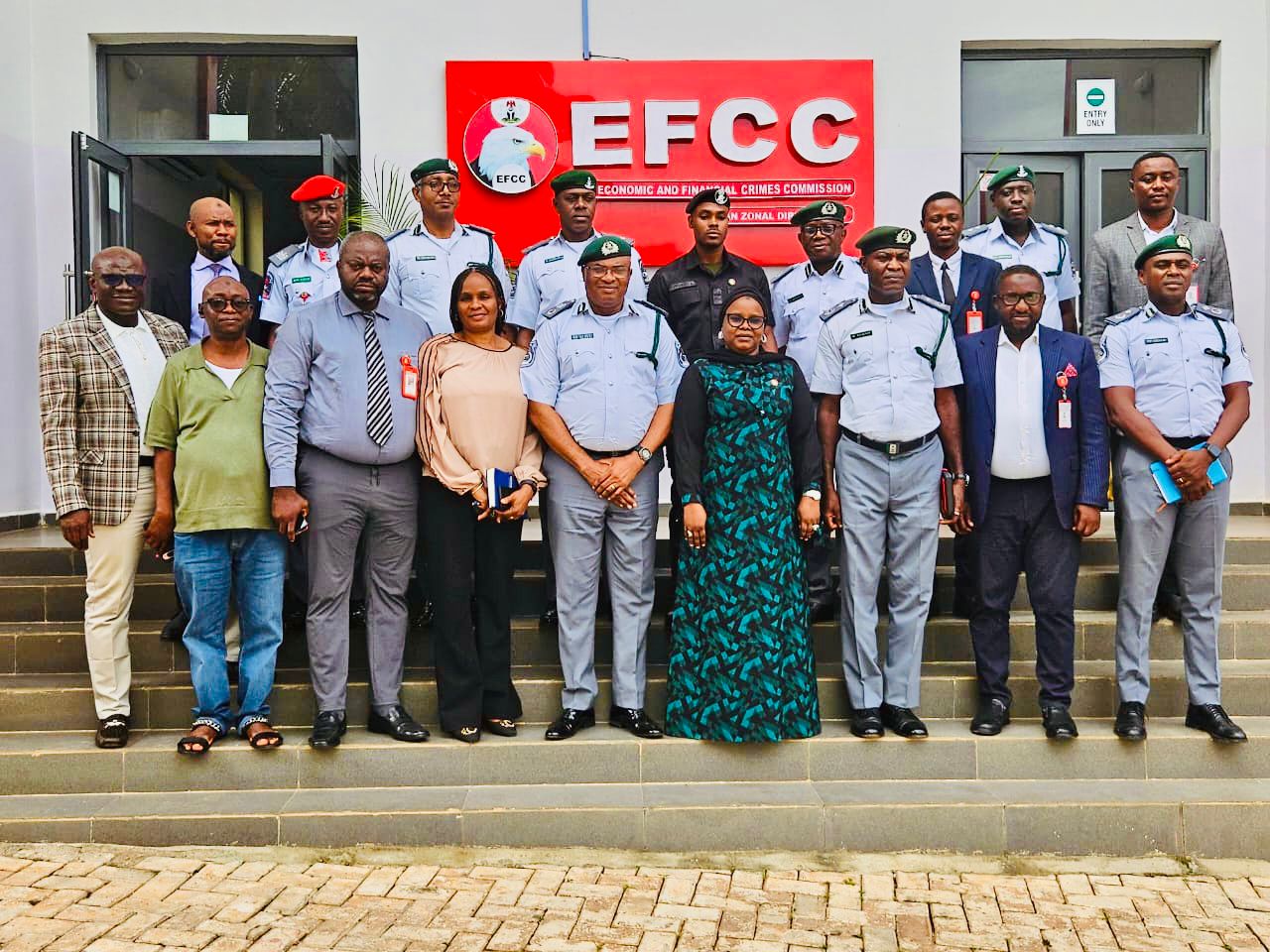 The Customs Area Controller of Oyo/Osun Area Command, Comptroller Gambo Iyere Aliyu, on Monday 6 October 2025 paid a courtesy visit to the Economic and Financial Crimes Commission (EFCC) Zonal Command, Ibadan.