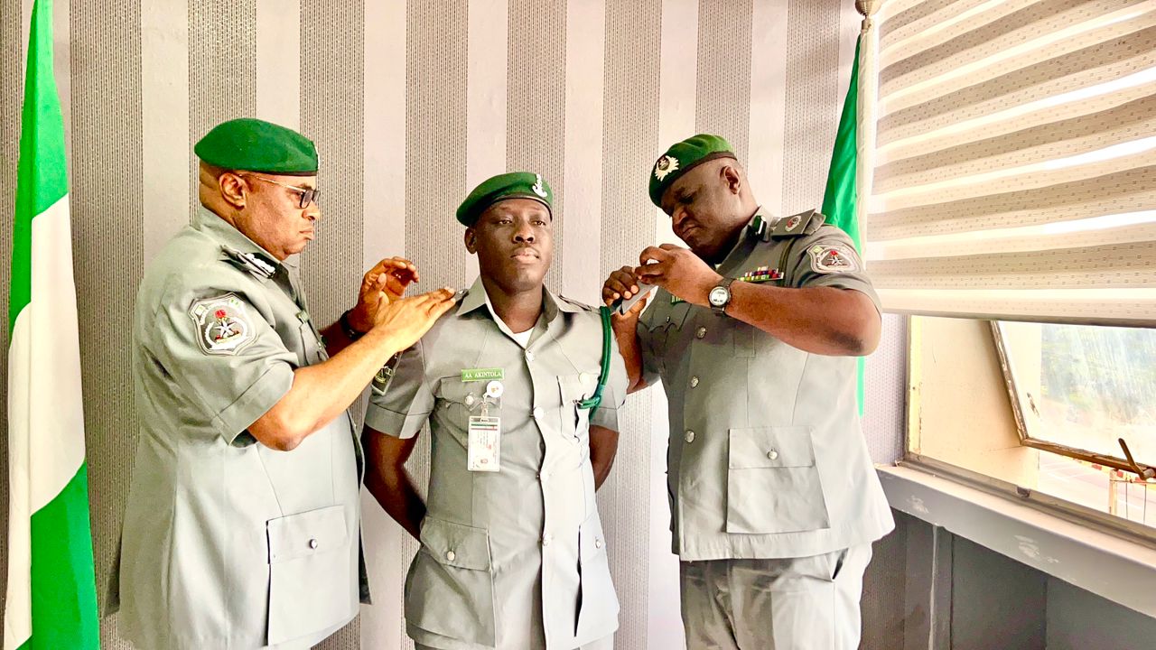 The Customs Area Controller, Oyo/Osun Command of Nigeria Customs Service (NCS) Comptroller Gambo Iyere Aliyu on Wednesday, 17 September 2025, formally decorated seventy-four (74) newly promoted Officers across different cadres of the Service.