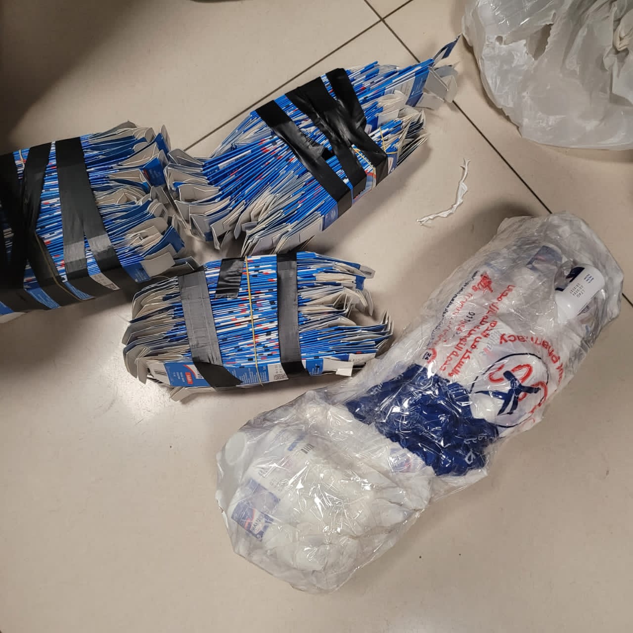 “The items were intercepted during a joint security check saying that upon the examination of the passenger’s luggage, it revealed 241 empty packages of OTRIVIN and 80 pieces of OTRIVIN nasal drops.”