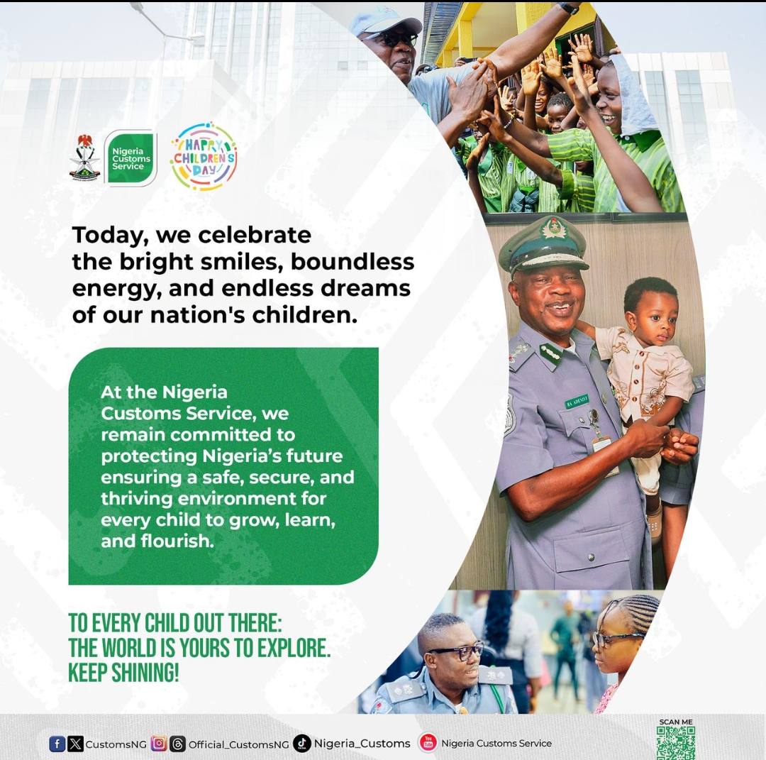 As Nigerians celebrate Children’s Day nationwide, the Nigeria Customs Service (NCS) has reaffirmed its commitment to protecting Nigeria’s future, ensuring a safe, secure and thriving environment for every child to grow, learn and flourish.