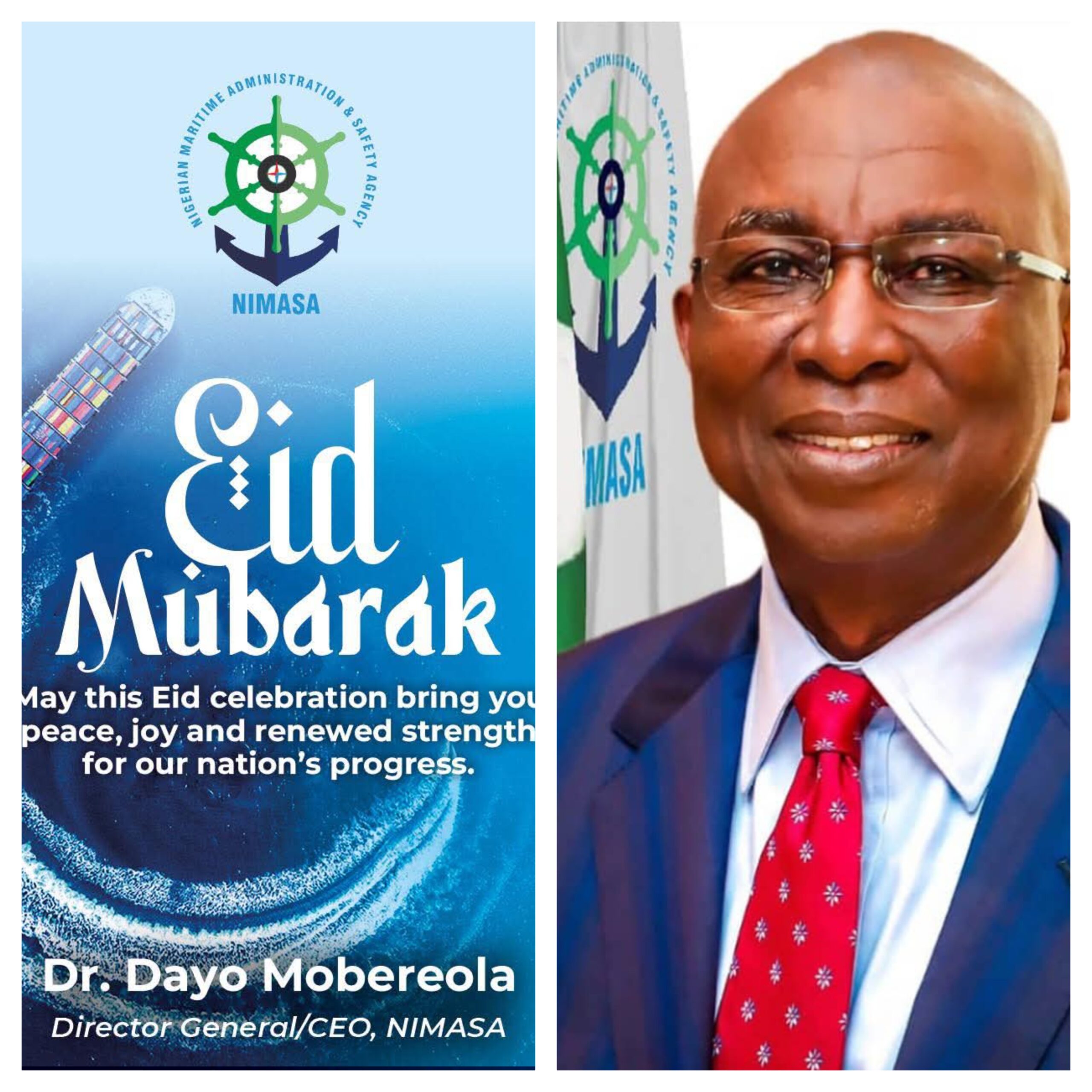 The Director General of the Nigerian Maritime Administration and Safety Agency, NIMASA, Dr. Dayo Mobereola, has extended warm felicitations to the Muslim faithful across Nigeria and beyond on the occasion of Eid-al-Fitr, urging all citizens to uphold compassion, discipline and service to humanity.