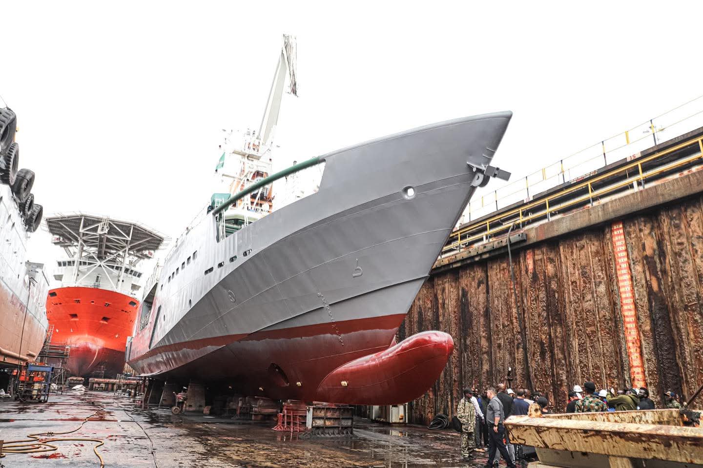 NIMASA Deep Blue Vessel – DB Lagos in the dock at Nigerdock at Snake Island integrated Free Zone during an inspection visit by DG NIMASA, Dr Dayo Mobereola in Lagos
