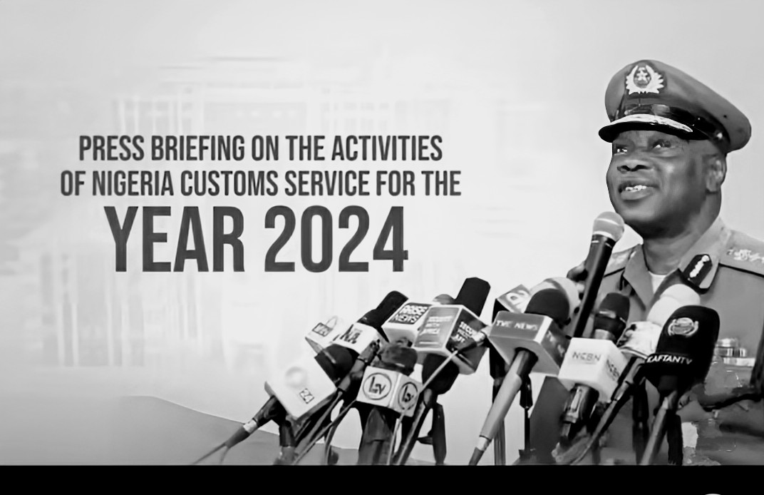 The Comptroller General of Customs, Bashir Adewale Adeniyi MFR, at a press briefing on the activities of Nigeria Customs Service for the year 2024.