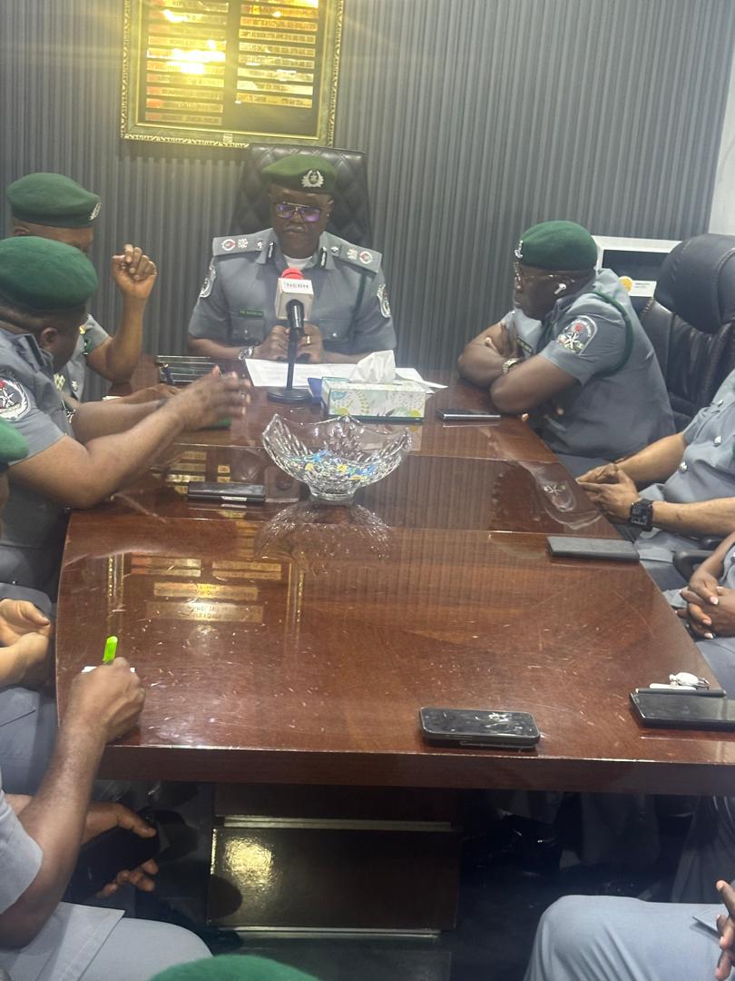 Customs Area Controller Comptroller Daniyan addressing his management team and newsmen at the Command on Wednesday.