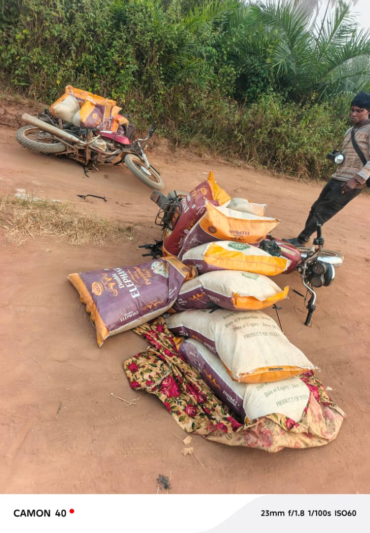 According to the statement, the officers intercepted a convoy of motorcycles conveying 46 bags of 50kg smuggled foreign parboiled rice, but were ambushed by large armed Smugglers with dangerous weapons, including Dane guns, stones, bottles, and charms.
